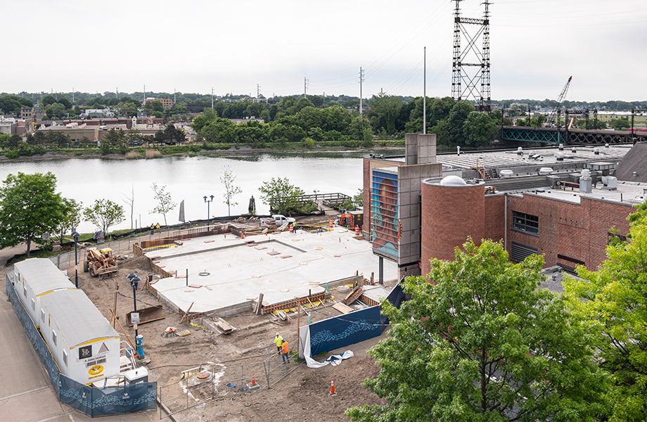 Pictured above: Progress at the Maritime Aquarium project site as of June 2020.