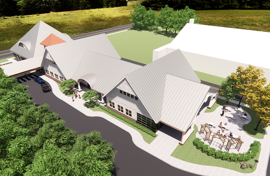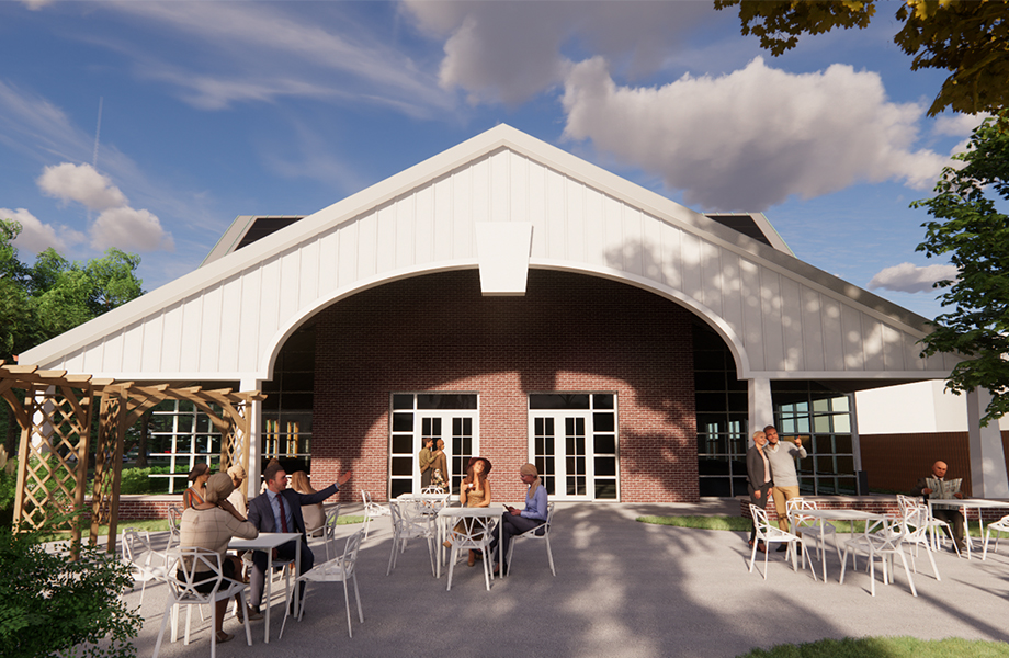 Pictured above: The new center will feature a variety of activity spaces indoors as well as comfortable gathering places outside.